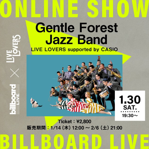 ビルボードライブ と LIVE LOVERS がタッグを組み、アーティストを迎えて行う配信ライブ。今回は、1月30日にビルボードライブ東京で行われる Gentle Forest Jazz Band 公演の2nd ステージが生配信する。