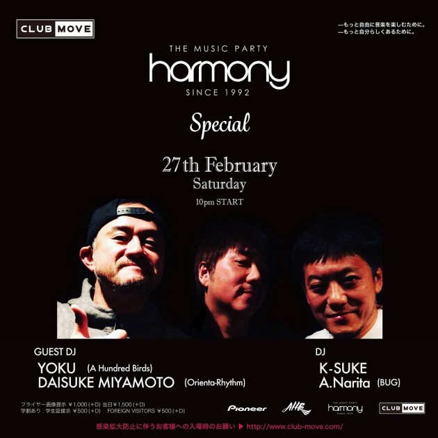 音楽を取り巻く環境の変化が著しい昨今、このHARMONYだけはいつも変わらず温かい場所であり続けたいと思います。新旧織り交ぜて、様々なジャンルをクロスオーバーさせて、刺激的なミュージックライフを今回もみなさんと楽しんでいけたら幸いです。