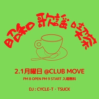 偶数月の第一月曜日に滋賀CLUB MOVEにて開催中。この日の音楽は昭和のスナックにタイムスリップ。そんな昭和歌謡にドップリと浸って頂けるクラブ・イベントが昭和歌謡喫茶です。誰もが知ってるお馴染みの曲からレアでマニアックな曲までと幅広い選曲でDJがプレイ。リクエストや音源持参も大歓迎。