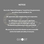 Due to the "State of Emergency" issued from the government, we will be closed until March 7th.