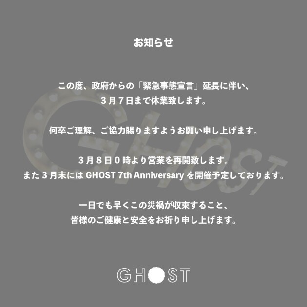 また3月末にはGHOST 7th Anniversaryを開催予定しております。