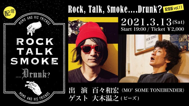 百々和宏(MO’SOME TONEBENDER)主催「Rock, Talk, Smoke….Drunk? 」3月のゲストは大木温之(ピーズ)