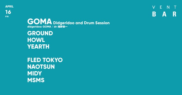 【 日本を代表するディジュリドゥ奏者!GOMAがDrum sessionで4月16日のVENT BARに登場 】