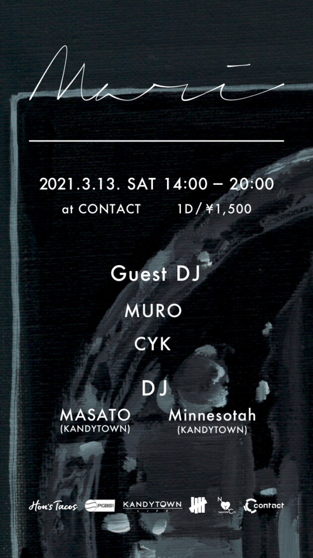 The monthly party “mari” held at Contact Tokyo hosted by KANDYTOWN DJs MASATO and Minnesotah.