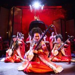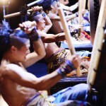 美しい照明に彩られた舞台上、完璧にシンメトリーに形作られた舞台。そのど真ん中に、直径2メートルほどもある巨木をくり抜いて作られた大太鼓が据えられています。