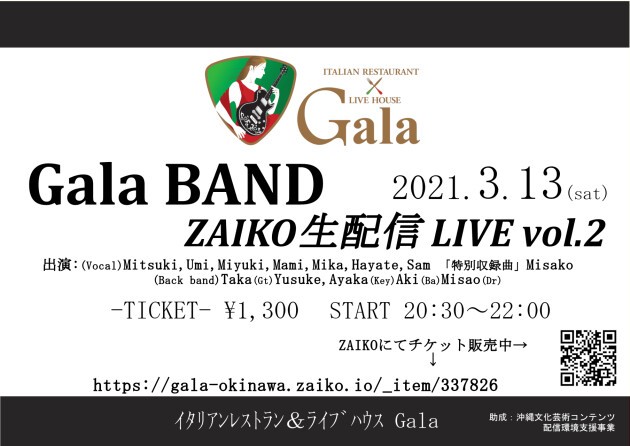 italian restaurant&live house 「Gala」の専属バンドによる生配信LIVE vol.2を開催します!