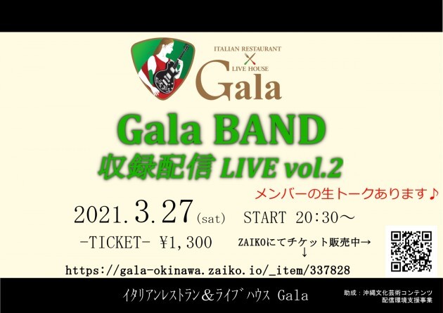 italian restaurant&live house 「Gala」の専属バンドによる収録配信LIVEvol.2!