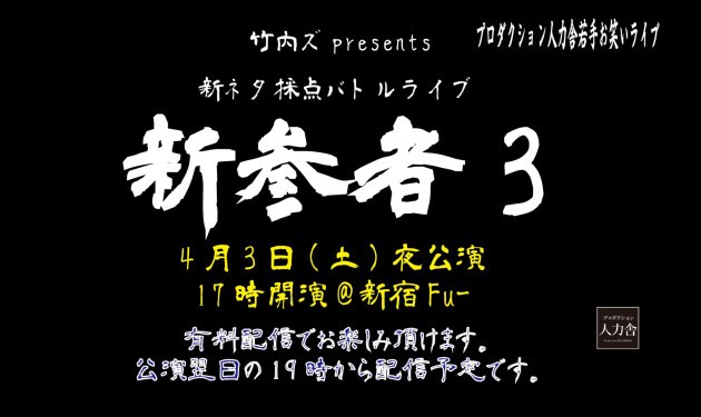 4月の…竹内ズ presents 新ネタ採点バトルライブ「新参者3」公演!