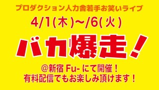 プロダクション人力舎の若手芸人による定期ライブ「バカ爆走!」2021年4月公演が劇場にて開催決定!