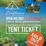 ※テントチケットは4/2(fri)18:00 より販売予定となっています。数には限りがあり先着順での販売になりますのでご希望の方はお早めにお買い求め下さい。(詳細につきましては後日のアナウンスをお待ちください。)エリア以外でのテント及びタープの設営は固くお断り致します。