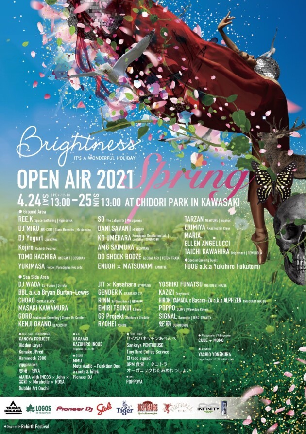 【 Brightness Open Air 2021 - 海沿いは開放的なロケーションを誇る川崎 ‘ちどり公園’ にて強力なラインナップを招集し4/24 - 4/25 開催! 】