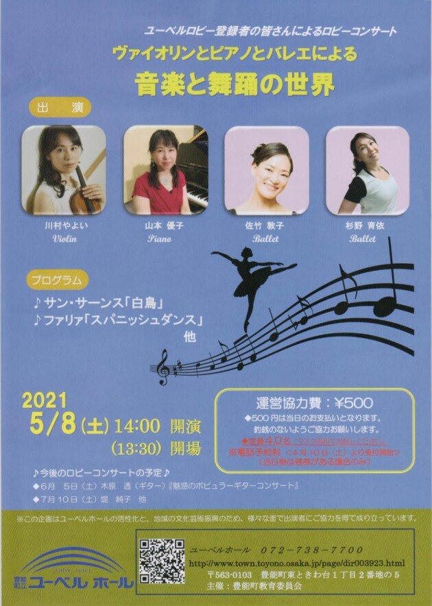 豊能町立ユーベルホールでは、毎月1回ロビーにてコンサートを行っております。