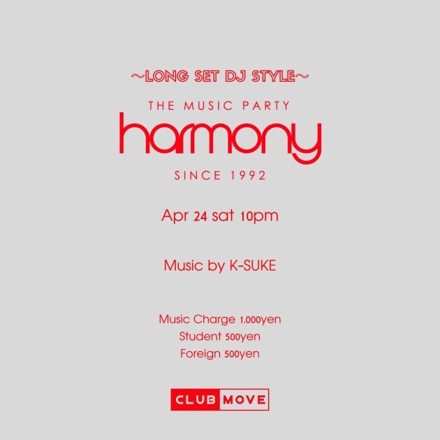 音楽を取り巻く環境の変化が著しい昨今、このHARMONYだけはいつも変わらず温かい場所であり続けたいと思います。新旧織り交ぜて、様々なジャンルをクロスオーバーさせて、刺激的なミュージックライフを今回もみなさんと楽しんでいけたら幸いです。