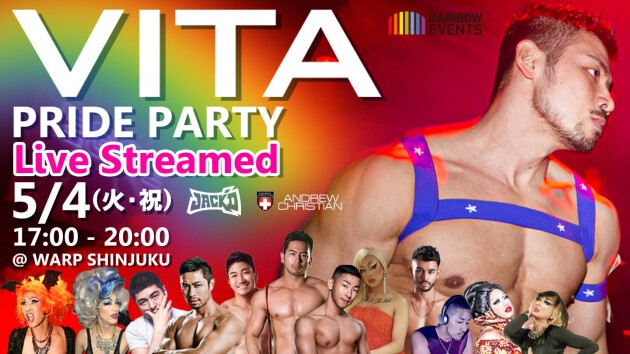 "VITA PRIDE PARTY Live Streamed"は、LGBTQ+プライドを祝福するミュージック・フェス、Tokyo Pride Beats 2021(*) の"Circuit Beat"、そしてメインパーティーとして開催されます。