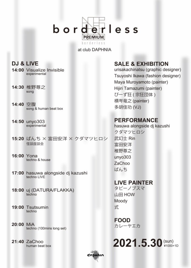 テクノ✖︎パフォーマンス✖︎芸術のデイイベント、ボーダレス豪華版。予定通りダフニアで開催します