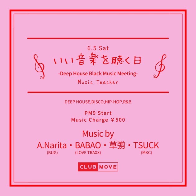 この日はMOVE界隈の様々なDJ達が週末BAR営業のBGMを担当します。
