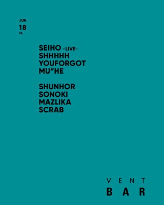 【 Flying LotusやDisclosureとも共演を果たしたSeihoと、Nicola CruzやVoodoohop周りとも共振するShhhhhが6月18日のVENT BARに登場! 】