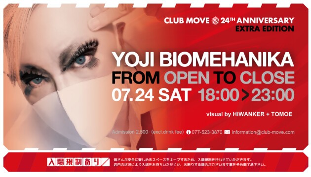 The super legend "YOJI BIOMEHANIKA" is coming to "CLUB MOVE" in Otsu City, Shiga Prefecture, which is celebrating its 24th anniversary!