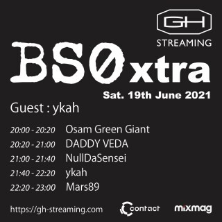 今回の放送は、本来であれば偶数月第二水曜6/9に開催されるBS0xtraをパッケージして、ストリーミングの形でお届けする。BS0xtraクルーは、ヒップホップ/アブストラクトに重心を乗せたテクニカルなビートと、その変遷と発展をドープにデザインするハイクオリティなヘビーウェイトサウンド、DADDY VEDA。開放的な音楽欲求と卓越した審美眼がもたらす高密度なサウンドデザインと、その中でカルティックなまでに強烈なサイケデリアを反映させるMars89。ベースミュージックと電子音楽のエクスペリメンタルな融合と更新による深い奥行きと緻密さがみせる造形美で繰り広げるNullDaSensei。24年の歴史を持つドラムンベース・コレクティブSoi Productionsの中核で、グローバルなベースカルチャーのサウンドとスピリットの複合に深い没入感とトリップ感を包含させるOsam Green Giant、といった、個々に高いオリジナリティと強固な活動基盤、そしてベースミュージックの多様性をユナイテッドする実力に優れたメンバーが揃う。そして、今回ゲストに招くykahのダブの感覚で鳴らされるテクノからレフトフィールド等の電子音楽との行き来は、BS0xtraクルーとの絶妙な交わりと、この配信の興味深い脈絡の一部となる相乗効果をみせている。