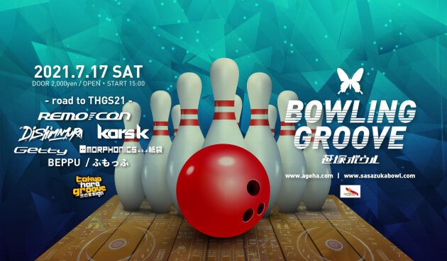笹塚ボウルとageHa のコラボイベントとして、4月より開催しているBOWLING GROOVEの第4弾となる「BOWLING GROOVE - road to THGS21 - には、THGSのレジデントというべきREMO-CON、DJ Shimamura、kors kの3名に加え、Getty,Morphonics a.k.a 紙袋、BEPPU、ふもっふという豪華メンバーがラインナップ!