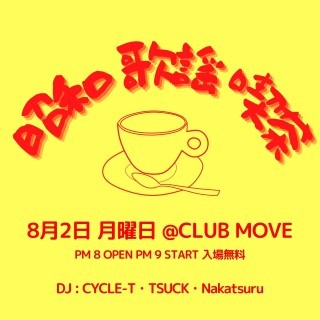 偶数月の第一月曜日に滋賀CLUB MOVEにて開催中。この日の音楽は昭和のスナックにタイムスリップ。そんな昭和歌謡にドップリと浸って頂けるクラブ・イベントが昭和歌謡喫茶です。誰もが知ってるお馴染みの曲からレアでマニアックな曲までと幅広い選曲でDJがプレイ。リクエストや音源持参も大歓迎。