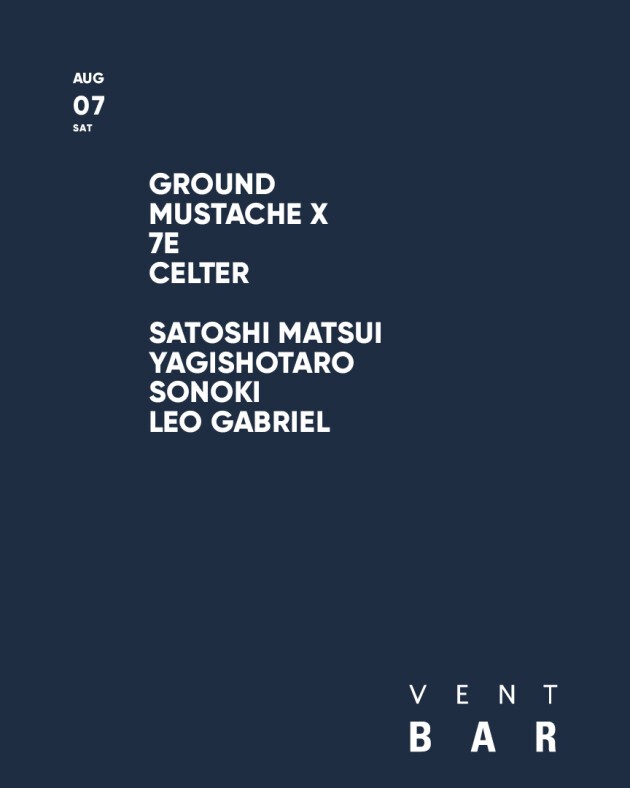シャーマニックなスロウ・テクノでワールドミュージックとダンスミュージックを現代的にクロスオーバーさせ、世界中の音好き達から支持を集める南米ブラジルのサンパウロのレーベル/パーティークルー“Voodoohop”を主催するThomashや、カナダの新興レーベル“Multi Culti”のDreemsからもサポートを受け、世界20カ国を超える様々なフェスティバルやイベントに出演するGroundが大阪から出演。さらに、ShigeoJD(ex.スケボーキング)とDJ MAAR(ex.DEXPISTOLS)によるFake Eyes Production における中核的存在であり、ここVENTでもATOM TM、RED AXES、KhidjaやDJ NOBUなど名だたるアーティストと共演を果たしてきたMustahce Xが登場する。