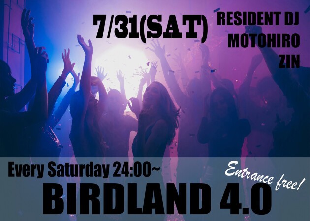 「BIRDLAND4.0」開催!! エントランスフリー 7/31日(土) 24:00〜OPEN コロナ対策強化中,マスク着用でのご来店お待ちしております。
