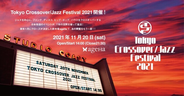 7年の沈黙を破って「Tokyo Crossover/Jazz Festival」略して TCJFがageHaで復活!! 11月20日土曜14:00オープン。ageHaのオープンエア空間を最大限に活用し開催する。