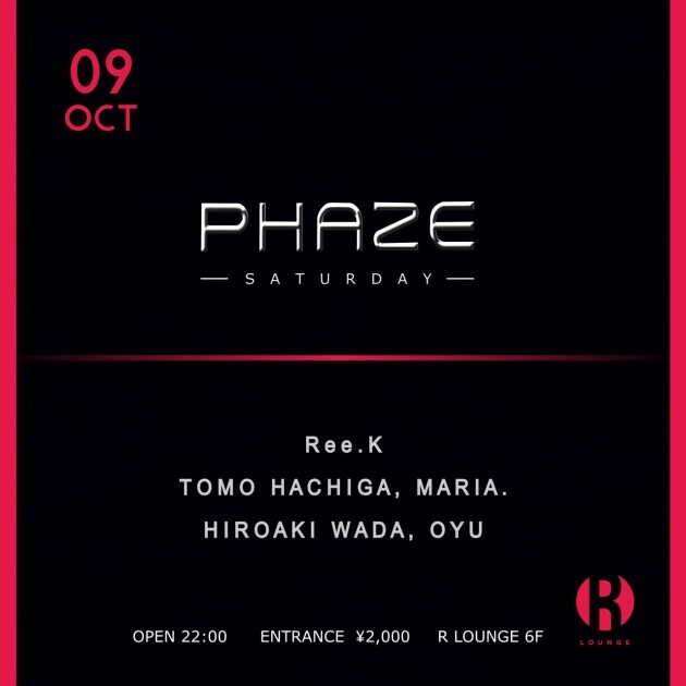 R LOUNGEにて開催されているテクノ、ハウスを中心に最新のダンスミュージックを発信するパーティ『PHAZE』 約3カ月ぶり通算220回目の開催となる今回は、Ree.K、TOMO HACHIGA、MARIA.などが登場