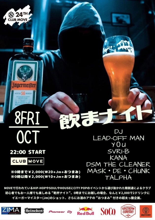 MOVEで行われているHIP-HOPやSOULやHOUSEにCITY POPのイベントから選び抜かれた精鋭達によるクラブ初心者でもお一人様でも楽しめます。