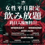 平日限定で女性は終日エントランスフリー & 飲み放題✨