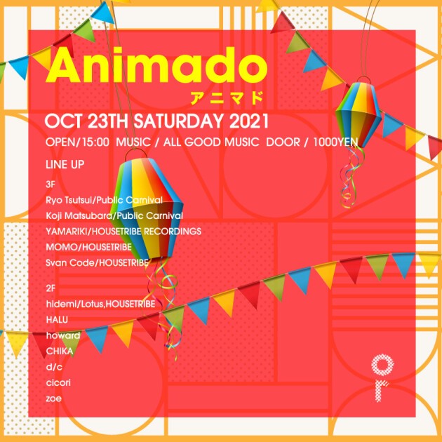 ハウスを軸に日本から世界への道を切り開くレーベル/イベント「HOUSETRIBE」を主宰するYAMARIKIとこれまで国内外でシーンを切り拓くイベントを数々成功に導き、新たに「PUBLIC CARNIVAL」も立ち上げたRYO TSUTSUIの邂逅により新パーティ【Animado】が生まれる。