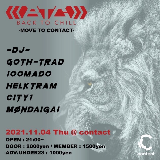 主宰GOTH-TRADがUKのダブステップ・シーンと繋がるきっかけとなった自身のタイトル「Back To Chill」を由来に、2006年に始動した同名のパーティーは日本初のレギュラー・ダブステップ・パーティーとして話題を呼び、国内のヘッズのみならず、海外のベース・ミュージック・ファンからも注目を集めている。今やダブステップ/ベースミュージック・パーティの最高峰かつ代名詞にもなっており、Contactでの開催もBack To Chillのサンクチュアリー・毎月第一木曜日に深夜の渋谷地下を大きく揺るがす。