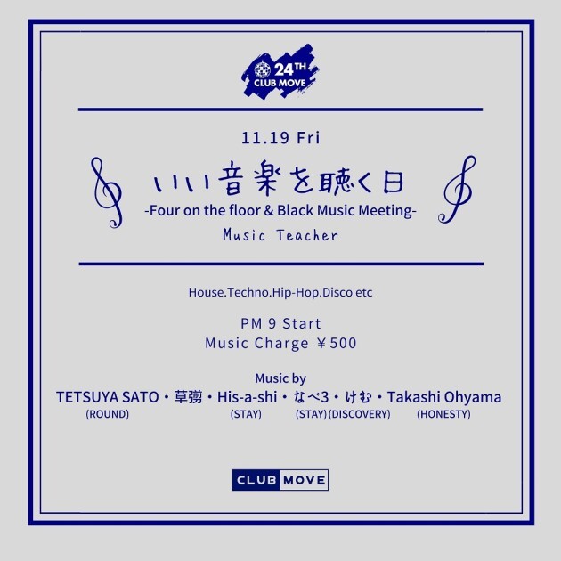 この日はMOVE界隈の様々なDJ達が週末営業のBGMを担当します。