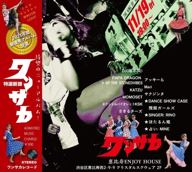 ★DJ&SELECTOR(順不同・出演決定順) PAPA DRAGON fr SP THE STONEDVIBES KATZU MOMOSET セクシャルバイオレットKSK さきるチーズ アッキーら Mari サクジンタ ★DANCE SHOW CASE: 隙間ガールズ(HI