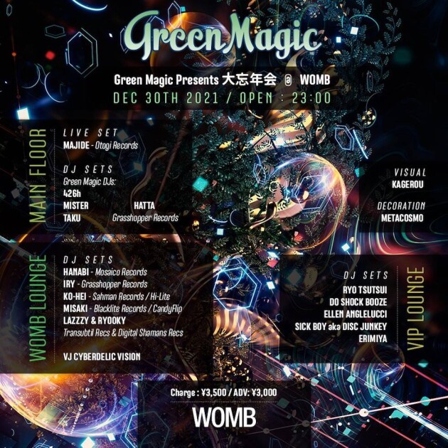 来年に向けて準備を進める中、今年の集大成として Green Magic Presents 大忘年会を WOMB にていよいよ初開催いたします。