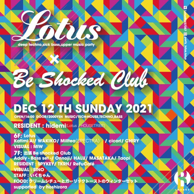 Lotusらしい多幸感溢れる空間と、Techno/Bassというカテゴリーを越えた個々の多彩なプレイをぜひ体感してほしい