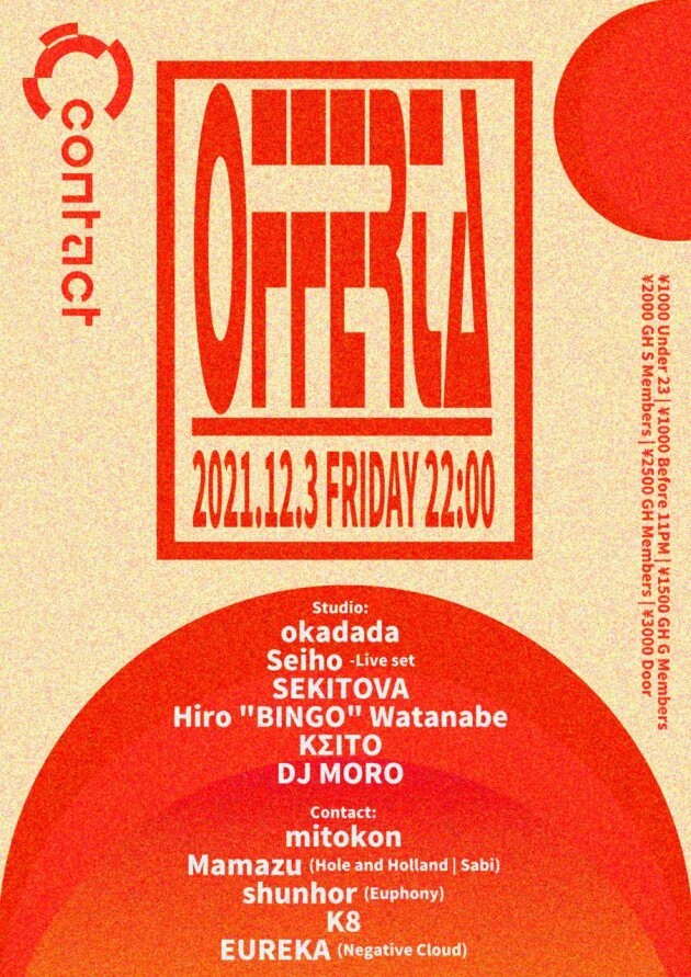飛び抜けた才能にフォーカスして極上の空間を提供するoffertaが第二回を迎える。トップクラスが集いイマジネーションを膨張させるStudio X、エスニックな音像に高度なエレクトロニクスが交錯するContact、2フロアに広がる魅力的な二面性は、心と体に充足感をもたらしてくれる。