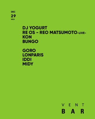 【 FUJI ROCKにも多数出演する実力派 DJ YOGURTと、ハンドパン奏者のパイオニアre os - REO MATSUMOTOが12月29日のVENT BARへ登場! 】