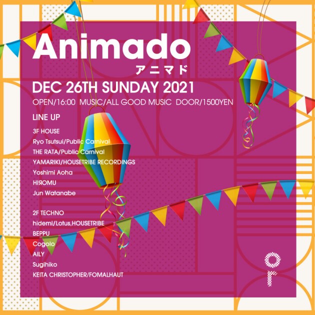 ハウスを軸に日本から世界への道を切り開くレーベル/イベント『HOUSETRIBE』を主宰するYAMARIKIとこれまで国内外でシーンを切り拓くイベントを数々成功に導き、新たに『PUBLIC CARNIVAL』も立ち上げたRYO TSUTSUIの邂逅により新パーティ『Animado』が生まれる。