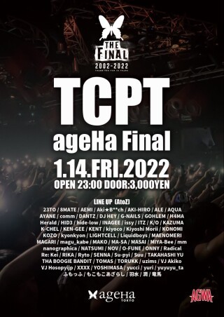 10年を超える歳月をageHaと共に過ごし、パーティーを行ってきたTCPTがageHa ファイナルに伴い、ageHa最後の主催パーティーを開催する。