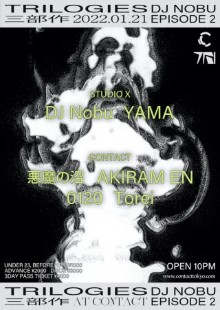 For the 2nd episode, the Osaka-based YAMA, known for organizing the infamous party "eep" along with ∈Y∋ from BOREDOMS, performing at the legendary party FLOWER OF LIFE, headlining for the closing party of MACAO, who has gained a cult following of party freaks across the nation takes the stage. He has often worked alongside DJ Nobu including Future Terror, and providing comments for his CD release. The House set with DJ Nobu for this occasion, a unique opportunity we may never come across again, hints that something dangerous yet sweet is bound to happen. The cult-like vibe will be carried out in the Contact floor with 悪魔の沼 (AKUMA NO NUMA) and AKIRAM EN acting as deep listening devices to activate your extrasensory perception. AI.U and EMARLE's DJ unit 0120, where the high musicality of both sides intersect to form a deep structure, and the use of beats and progression by Torei, with an imagination like no other, will be a fusion of eclectic sounds that paint an avant-garde scene.