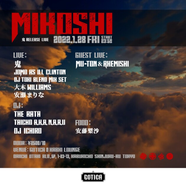 LIVE: 鬼 / JOMO as Ill Clinton / DJ TOKI BLEND MIX SET / 大木Williams / 安瀬まりな