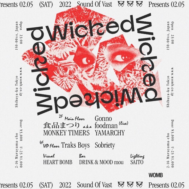 アムステルダム発の日本人主宰レコードレーベル Sound Of Vast が、レーベルカラーであるハウスミュージックを軸に、パーティーの根幹にある「多幸感」をコンセプトとしたパーティー Wicked を WOMB で始動。昨年12月の初回は大成功で幕を閉じ、2回目となる今回も多種多様なラインナップが顔を揃える。