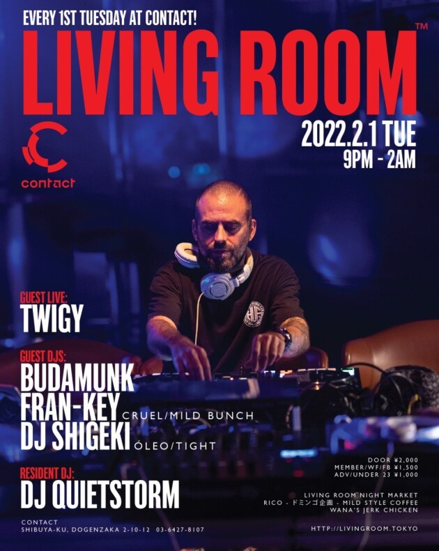 Organized by DJ Quietstorm hosts their regular party on the first Tuesday of every month, LIVING ROOM™ (https://livingroom.tokyo/).