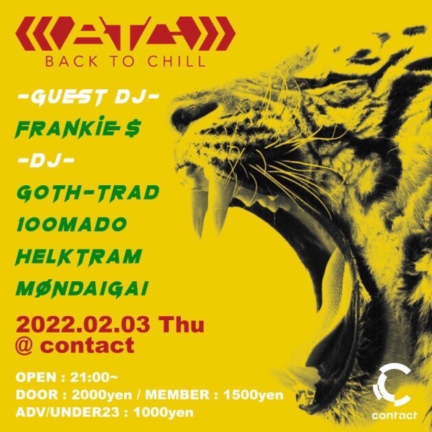 主宰GOTH-TRADがUKのダブステップ・シーンと繋がるきっかけとなった自身のタイトル「Back To Chill」を由来に、2006年に始動した同名のパーティは日本初のレギュラー・ダブステップ・パーティとして話題を呼び、国内のヘッズのみならず、海外のベース・ミュージック・ファンからも注目を集めている。今やダブステップ/ベースミュージック・パーティの最高峰かつ代名詞にもなっており、Contactでの開催もBack To Chillのサンクチュアリー・毎月第一木曜日に深夜の渋谷地下を大きく揺るがす。