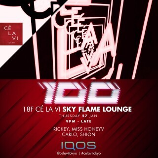 毎週木曜日、CÉ LA VI SKY FLAME LOUNGEにて "100"を開催中!