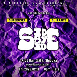 Side By Side 毎月第2金曜日渋谷駅辺りの有名な小箱「OATH」にて行われる四つ打ちダンス・ミュージックのセッション。 ハウス・テクノ・ディスコなど、最高の音楽を選曲するDJたちに心も体も委ねる一晩。毎月変わるゲストDJ、そしてSBSのレジデントDJたちとともに音楽の銀河で遊びましょう。