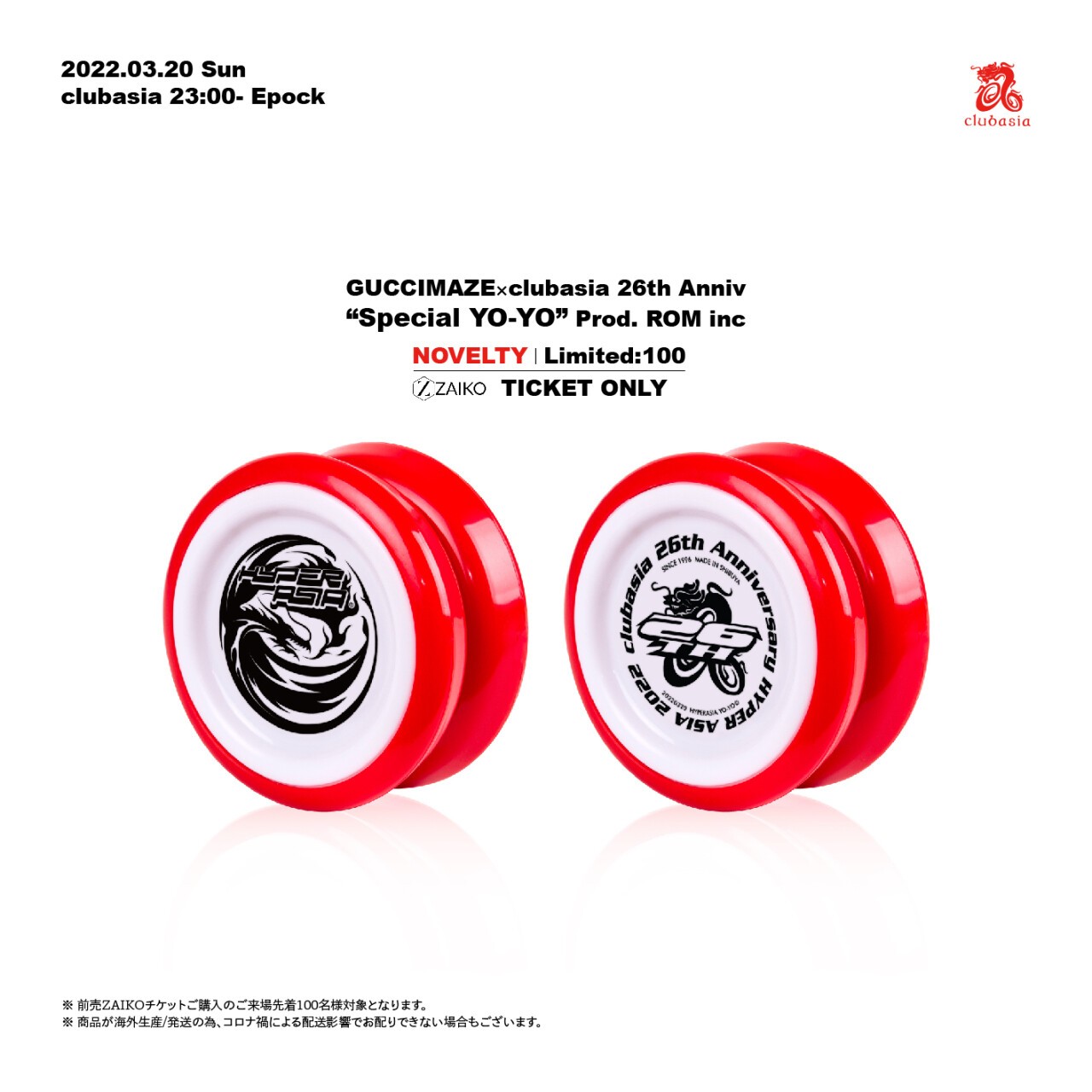 先着100名様に GUCCIMAZE × clubasia 26th Anniversary"SPECIAL YO-YO" プレゼント!!
