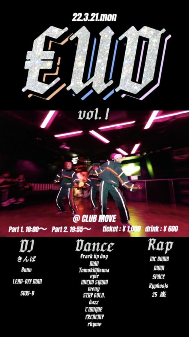 DANCER : €rack up dog / MAD / Tomoki & Asuna / epic / WICKD SQUAD / teeny / STAYGOLD. / dazz / L'UNIQUE / FRENEMY / rhyme